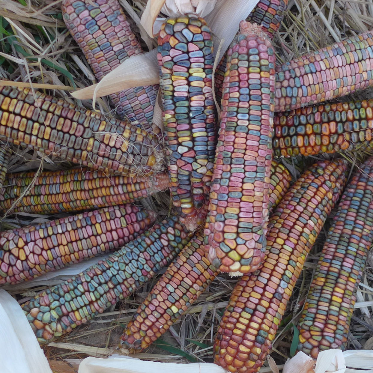 Prydnadsmajs som går i mjuka pastelliknande färger med stora kolvar om ca 20 cm.